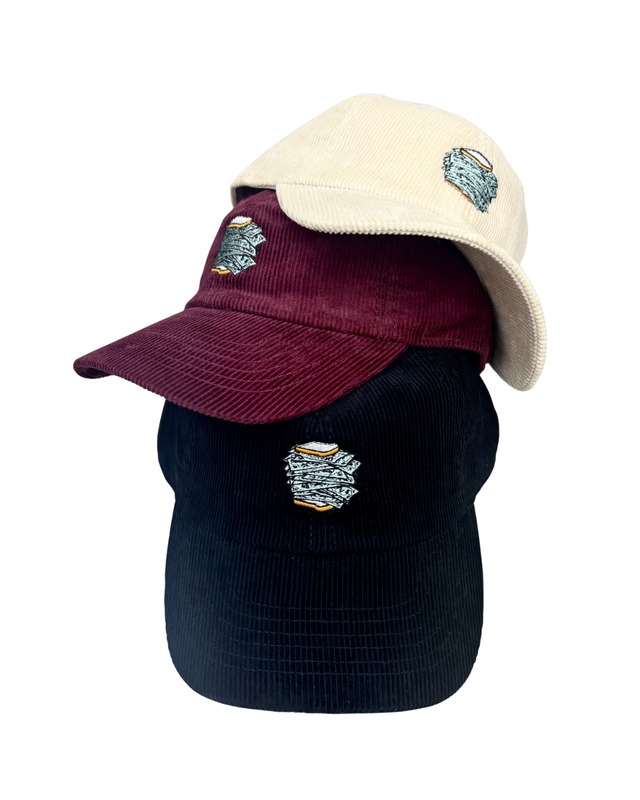 PUTS MONEY.S 6PANEL CORDUROY CAP color: BLACK / BEIGE / BURGUNDY size:ONE SIZE price:¥6,050- 圧着によるオリジナルワッペンのアートワークがフロントへ施されてます。