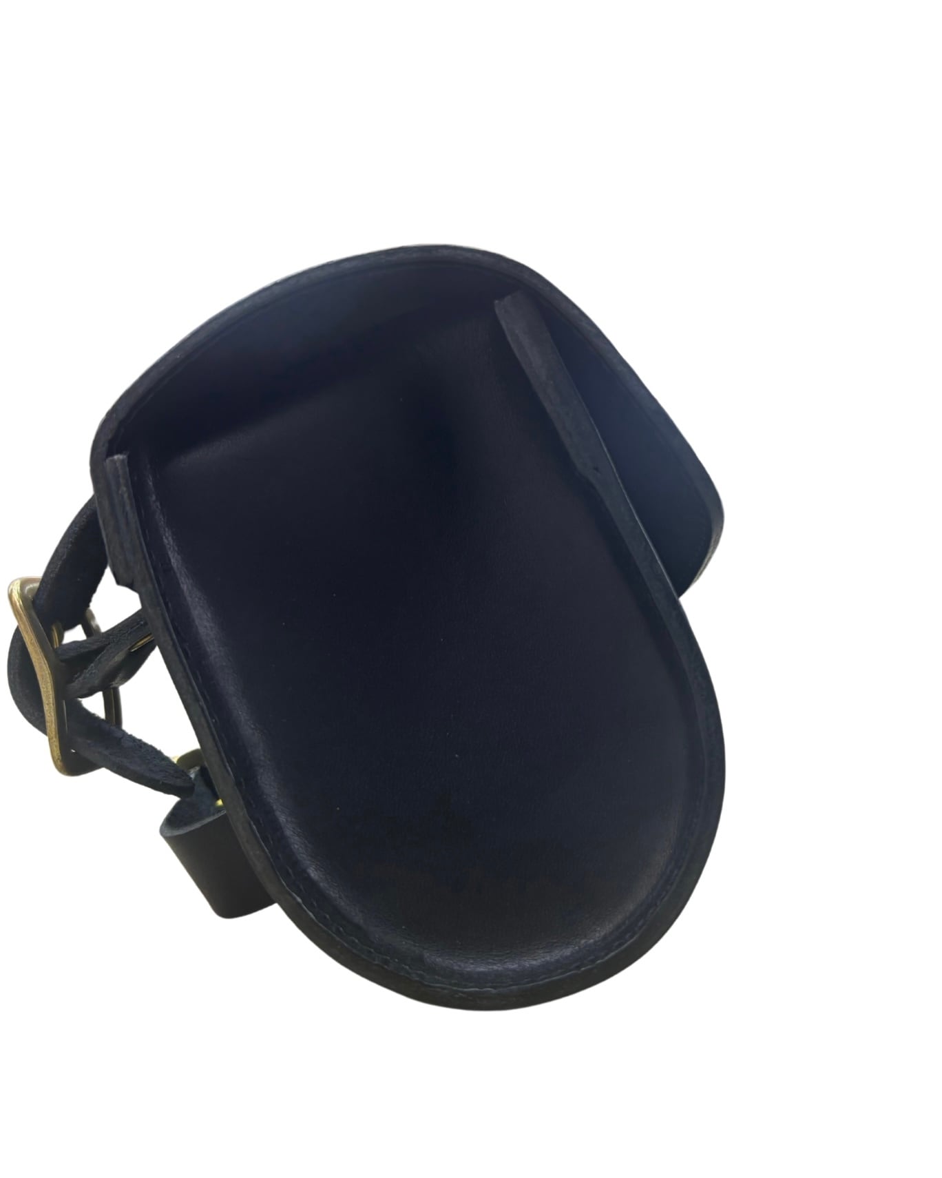 ロングウォレットがすっぽり入るサイズ感で携帯、ETC、プラグ等 サっと取り出せるようにプッシュボタンを採用、他のオリジナルレザーアイテムと同じステアハイドとパイソンを使用している。