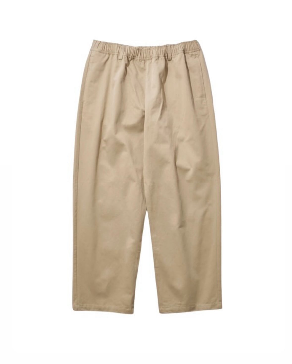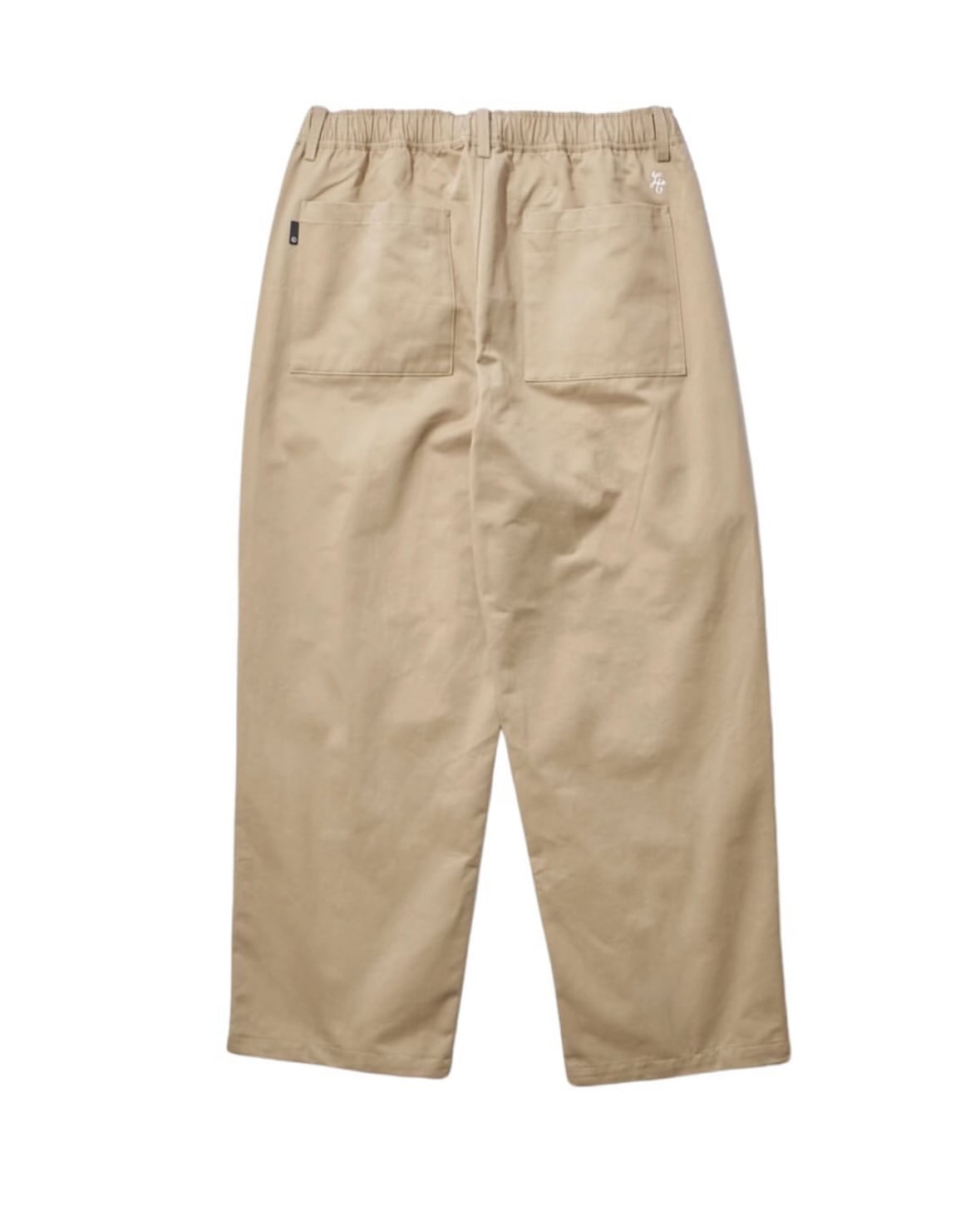 やや大きめのPatch Poket(バック)、物が溢れないやや深めのVerticalPoket(サイド)、ピスネームとエンブレム刺繍のみのシンプルなデザイン。ウエストゴム+紐と一般的なEASY PANTSのスタイルにベルトループ有りと2way仕様の一本。肝心のSizeは【ONE FITS ALL(168~175cm推奨)】、ロールアップ(低身長)、クロップド丈(高身長)でもシルエットの崩れない形はパタンナーの業。