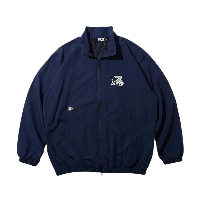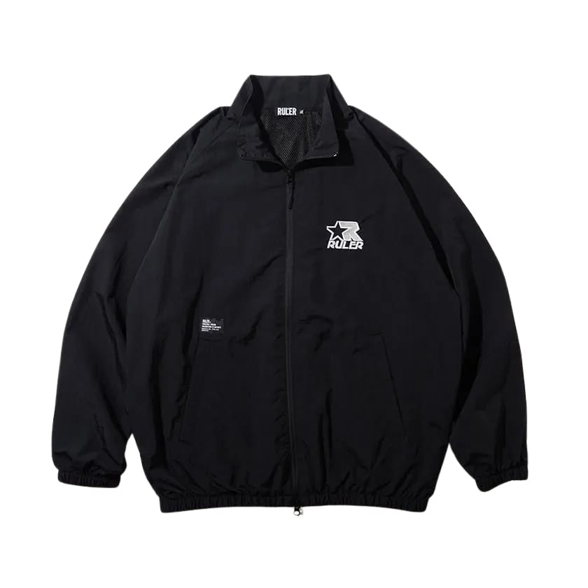 フロントにI.D.タグと刺繍でアートワークを配したナイロントラックジャケット。