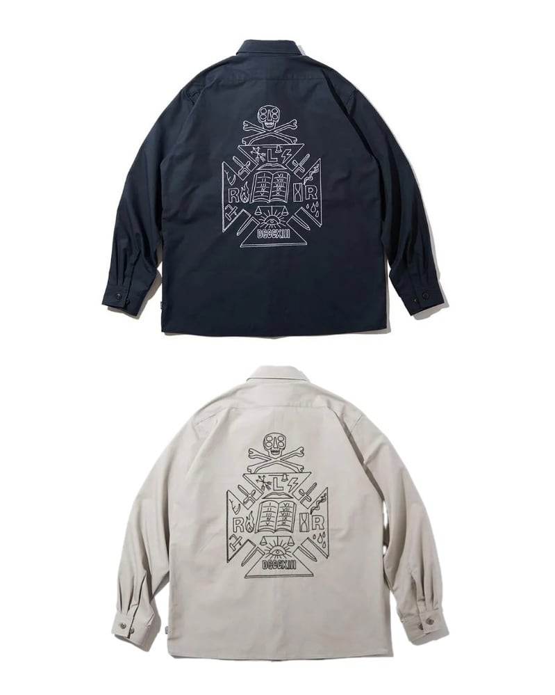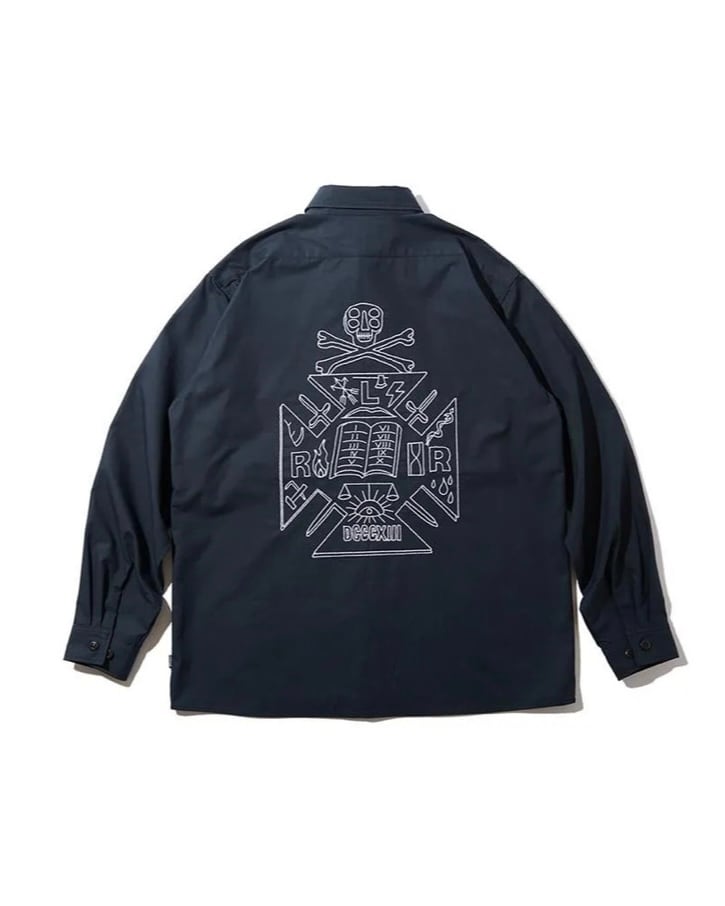コットン100%,リップストップ生地を使用し作製したロングスリーヴシャツ。フロント立体ポケット。左ポケットにATTDタグ、右裾に1.D.タグ、バックに刺繍でアートワークを配置。