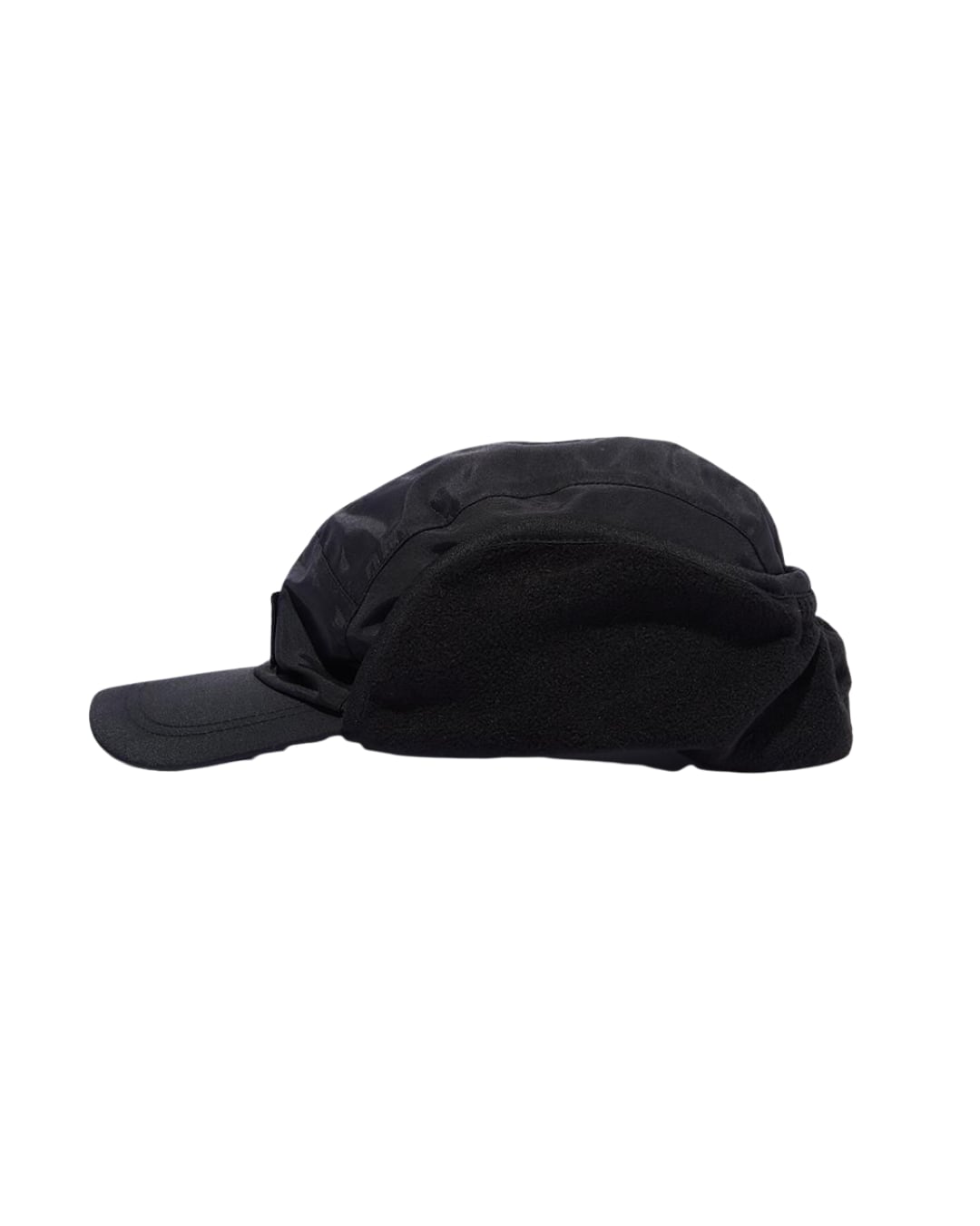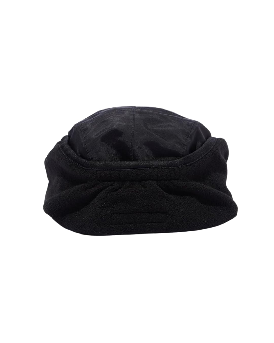 フロントにワッペンでアートワークを配した耳あて付きのナイロンマウンテンキャップ。バックにATTDタグを配置。ドローコードでサイズ調整可。内側フリース。