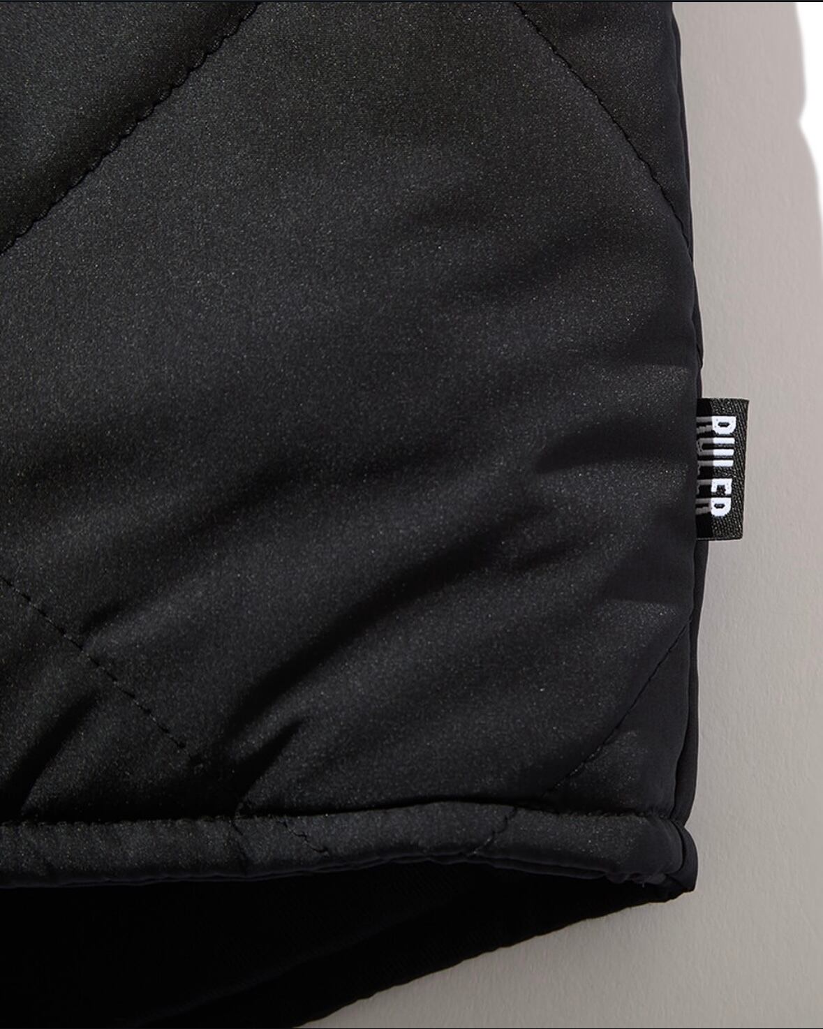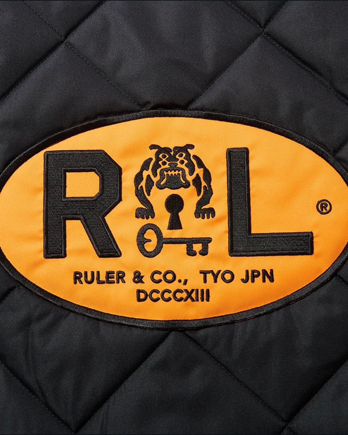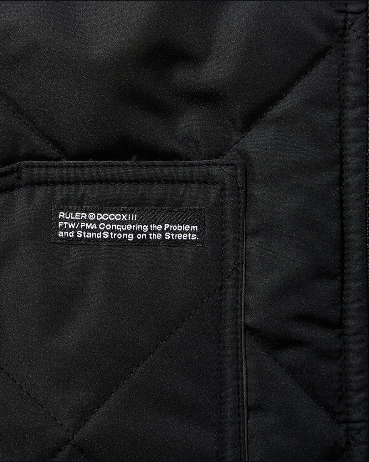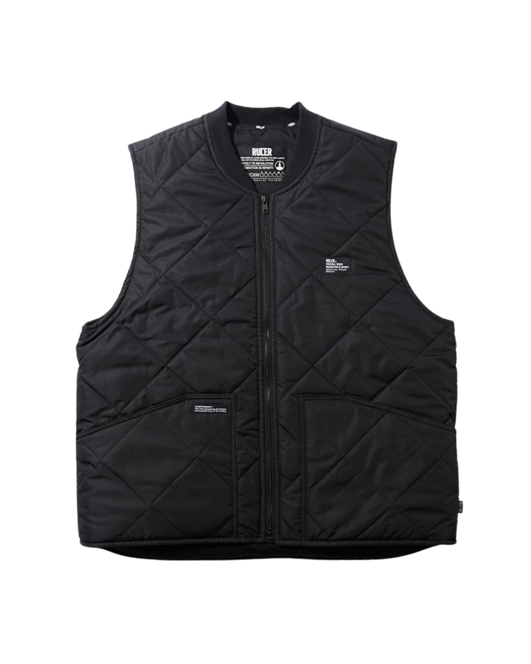 オリジナルダイアキルティングを使用し作製したキルティングベスト。フロントにI.D.タグとATTDタグ, バックにワッペンでアートワークを配置。インナーバックに缶ポケット有。