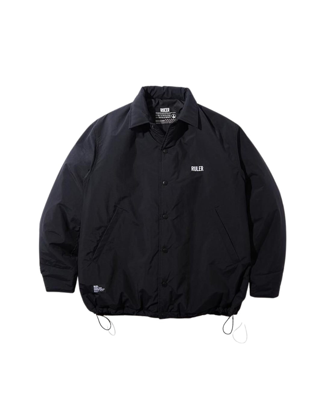 を配置。右裾に1.D.タグ、首にATTDタグを配置。裾はドローコードで調整可。バ
