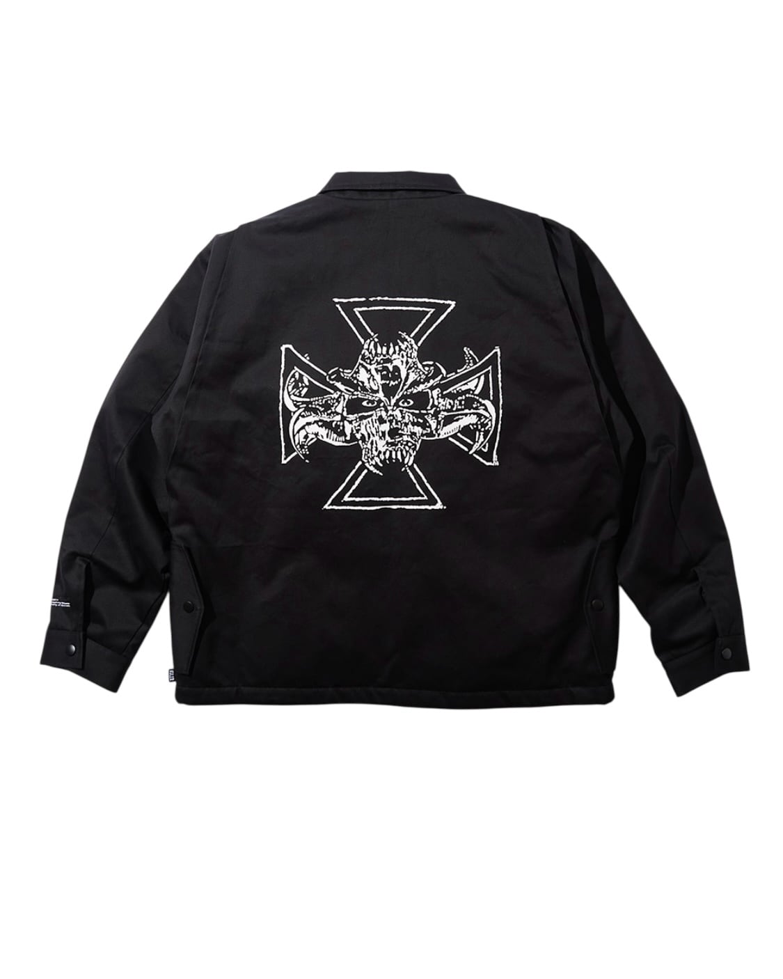 高密度ウェポン・ツイル生地を使用し作製した6ポケットハンタージャケット。フロントにID.タグと左胸に刺繍、バックにシルクスクリーンでアートワークを配置。内側:オリジナルダイアキルティング。