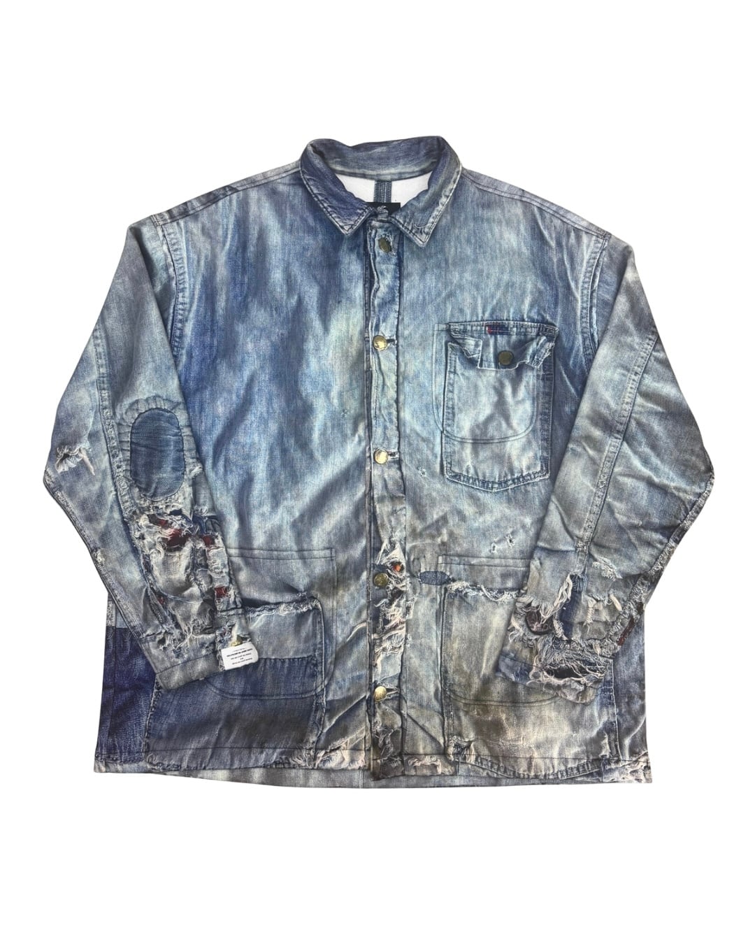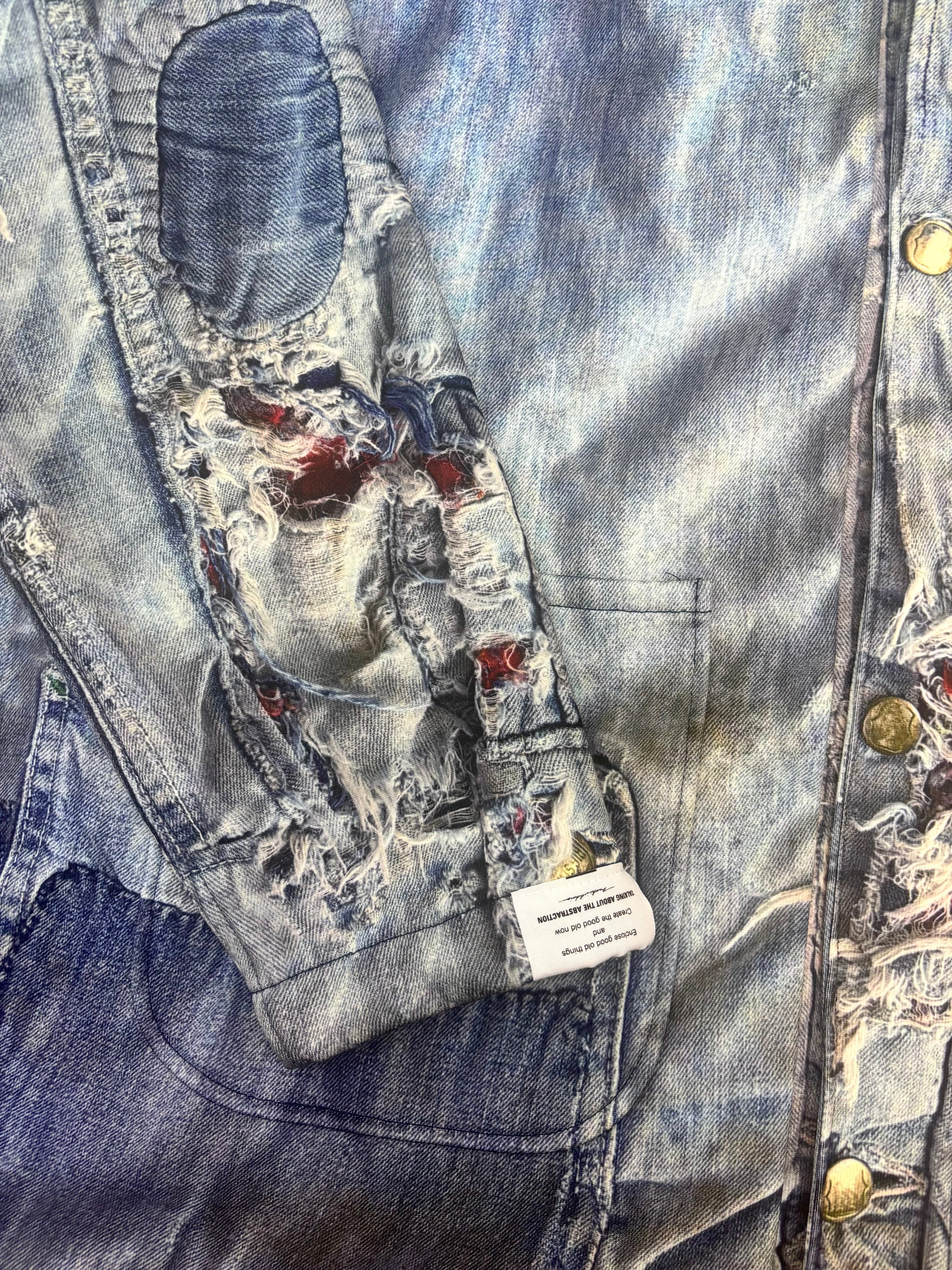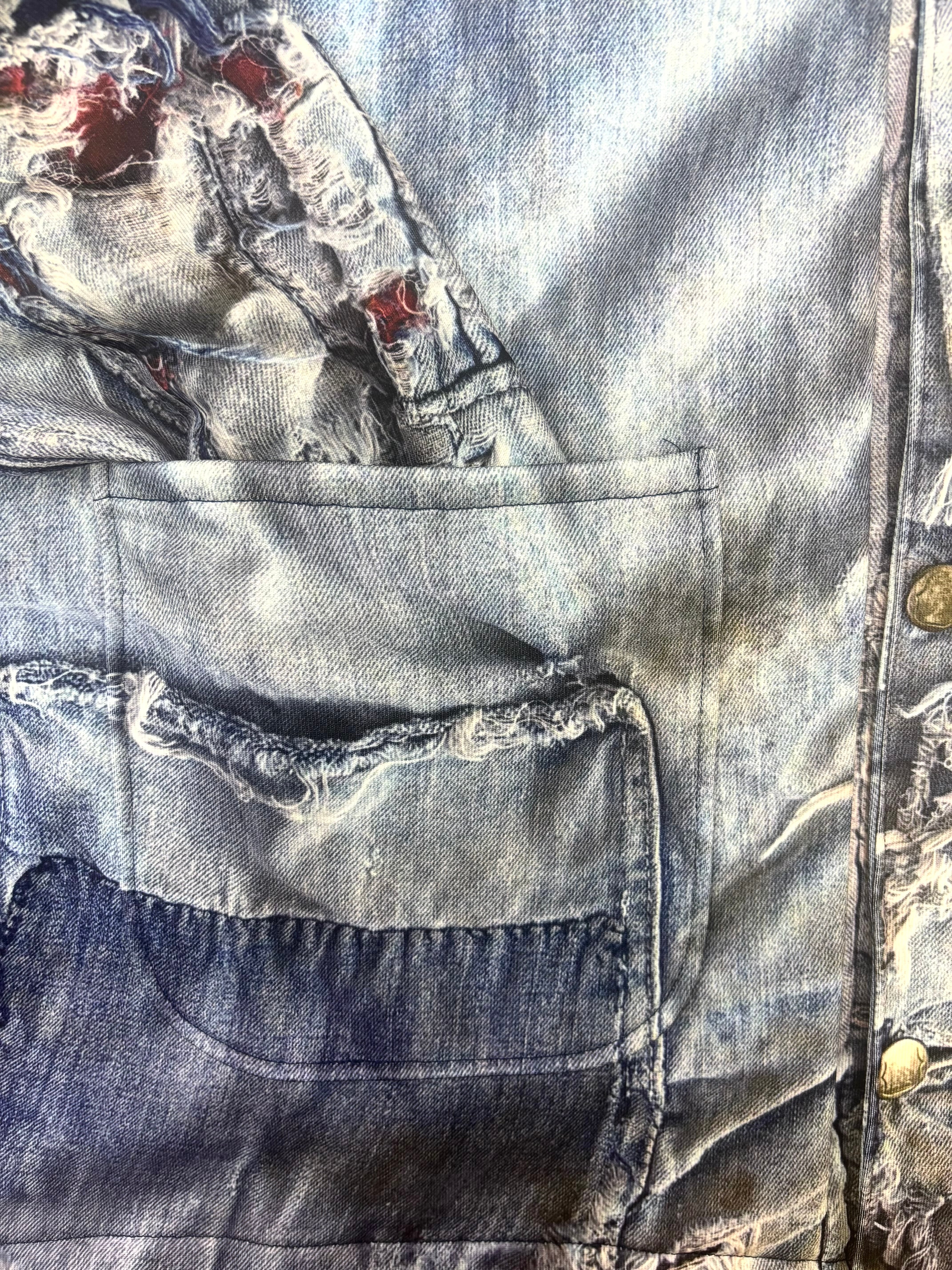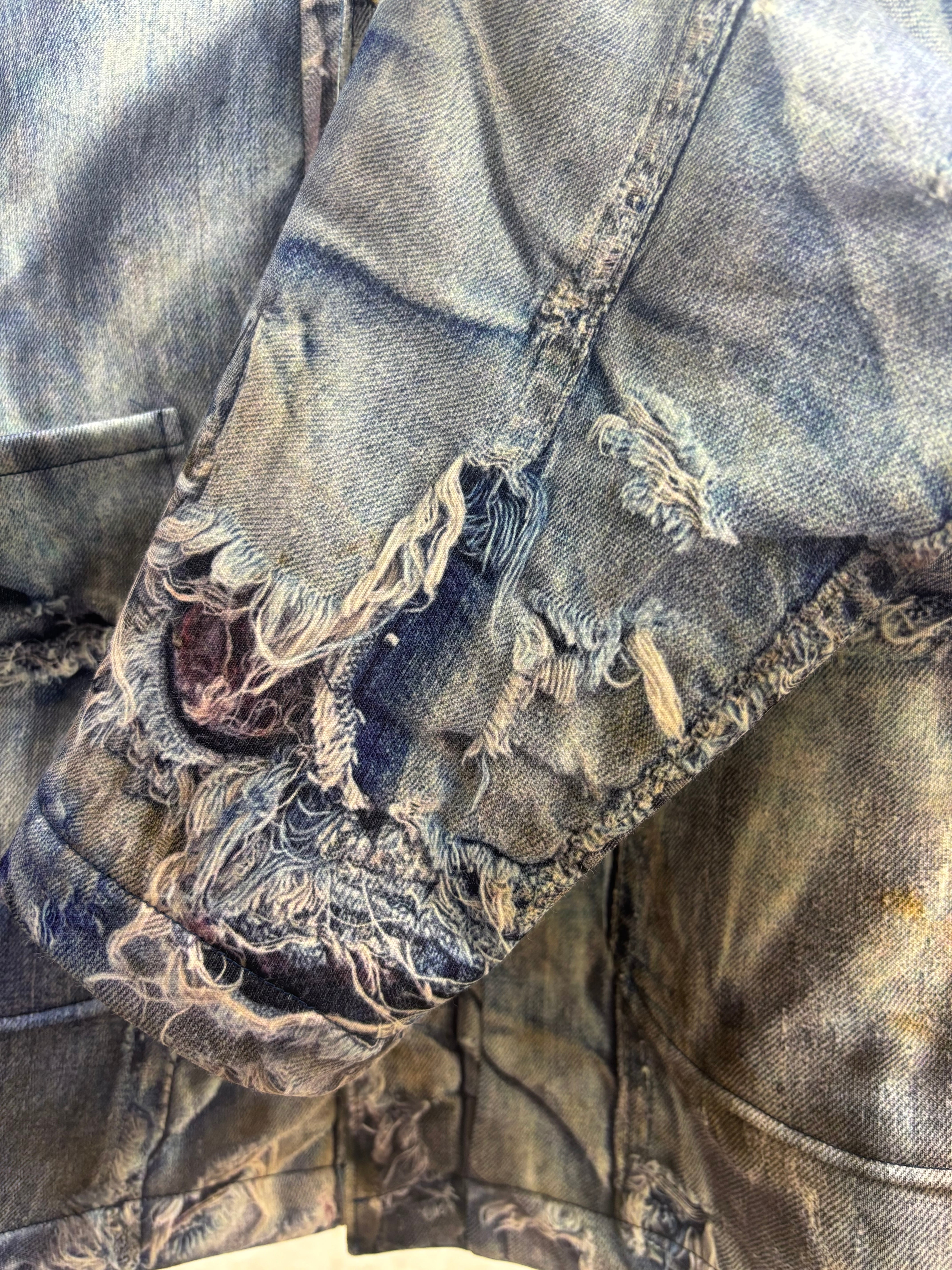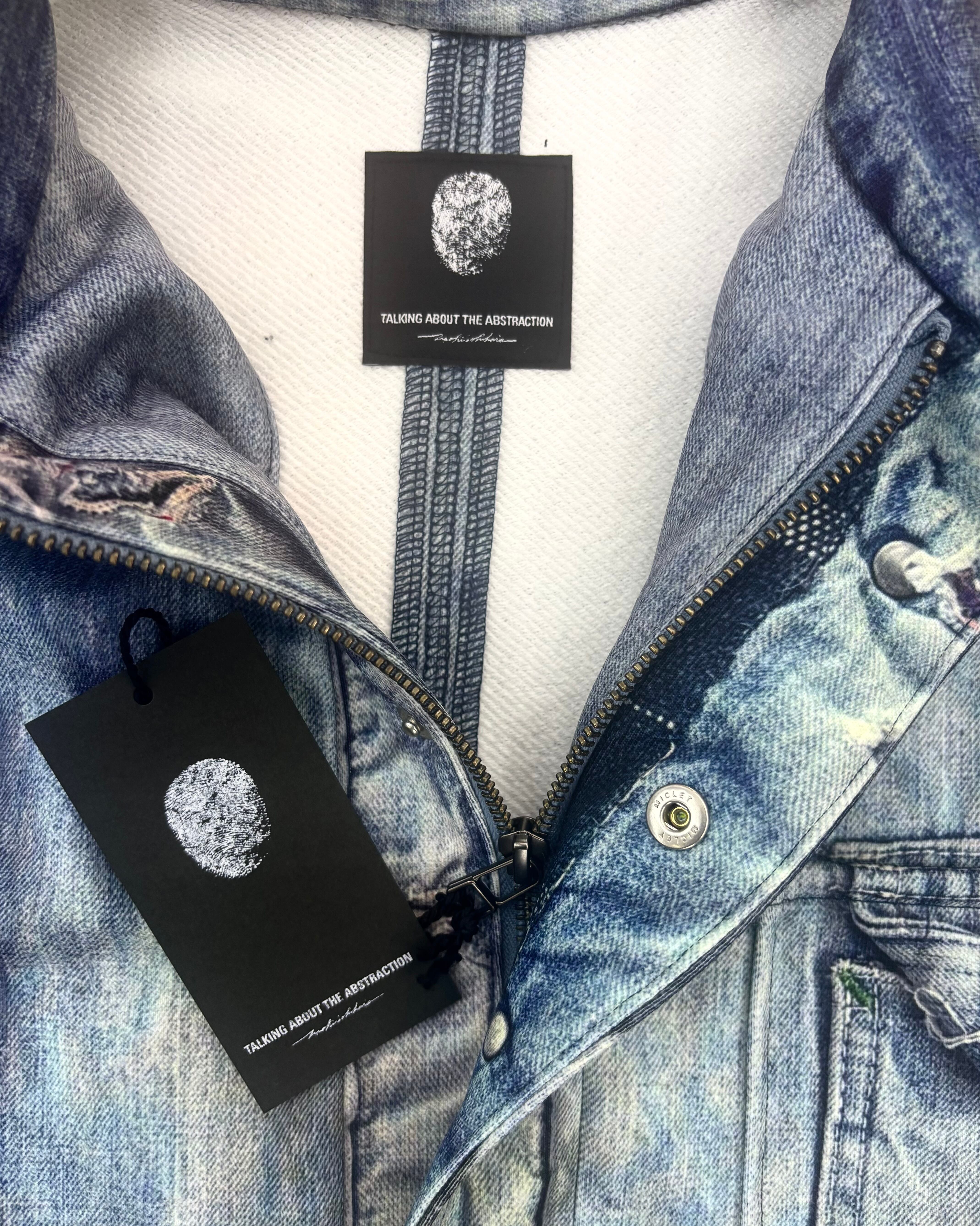 裏起毛生地にヴィンテージデニムジャケットが転写プリントされた