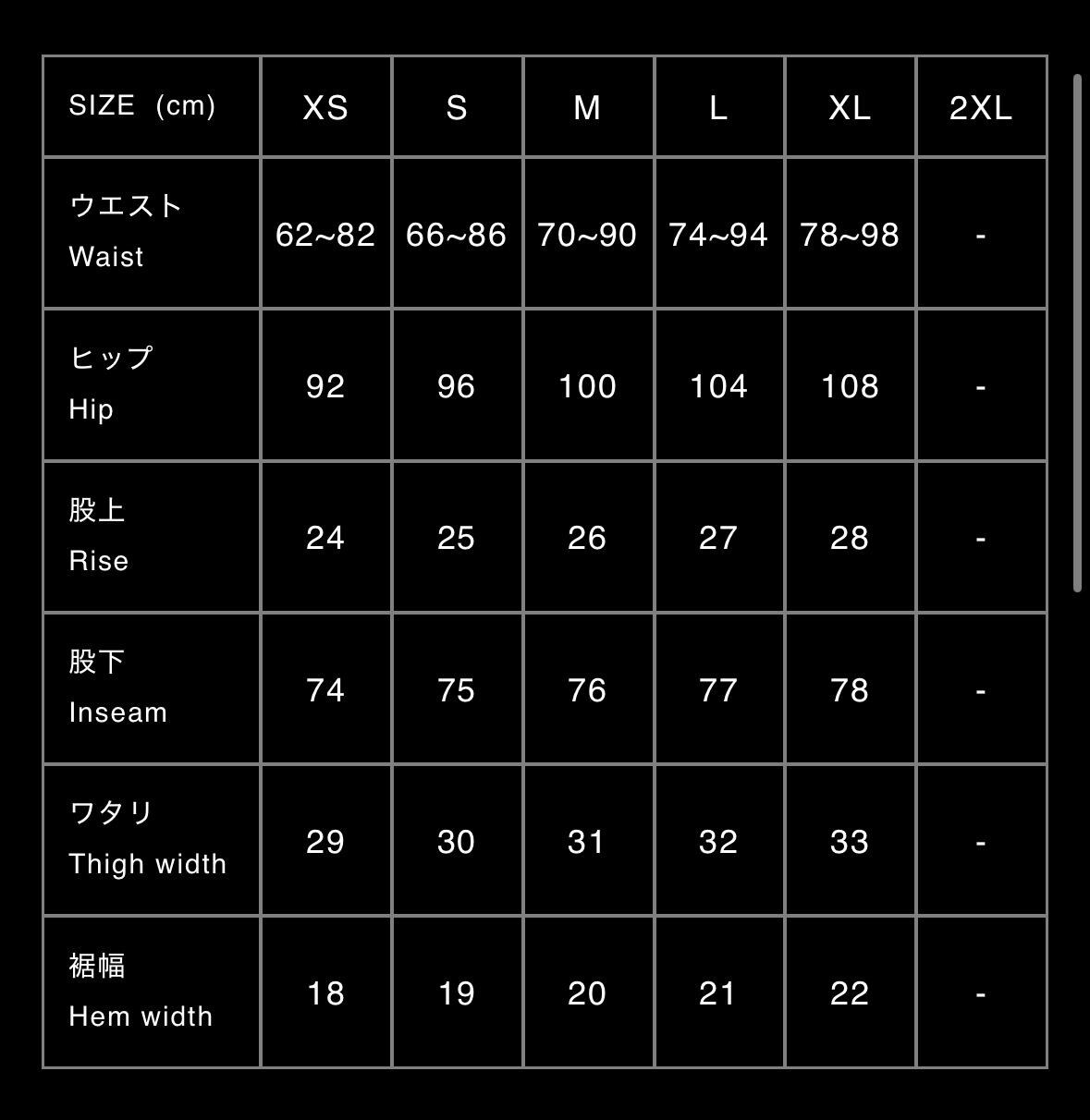 size: S/ M / L / XL