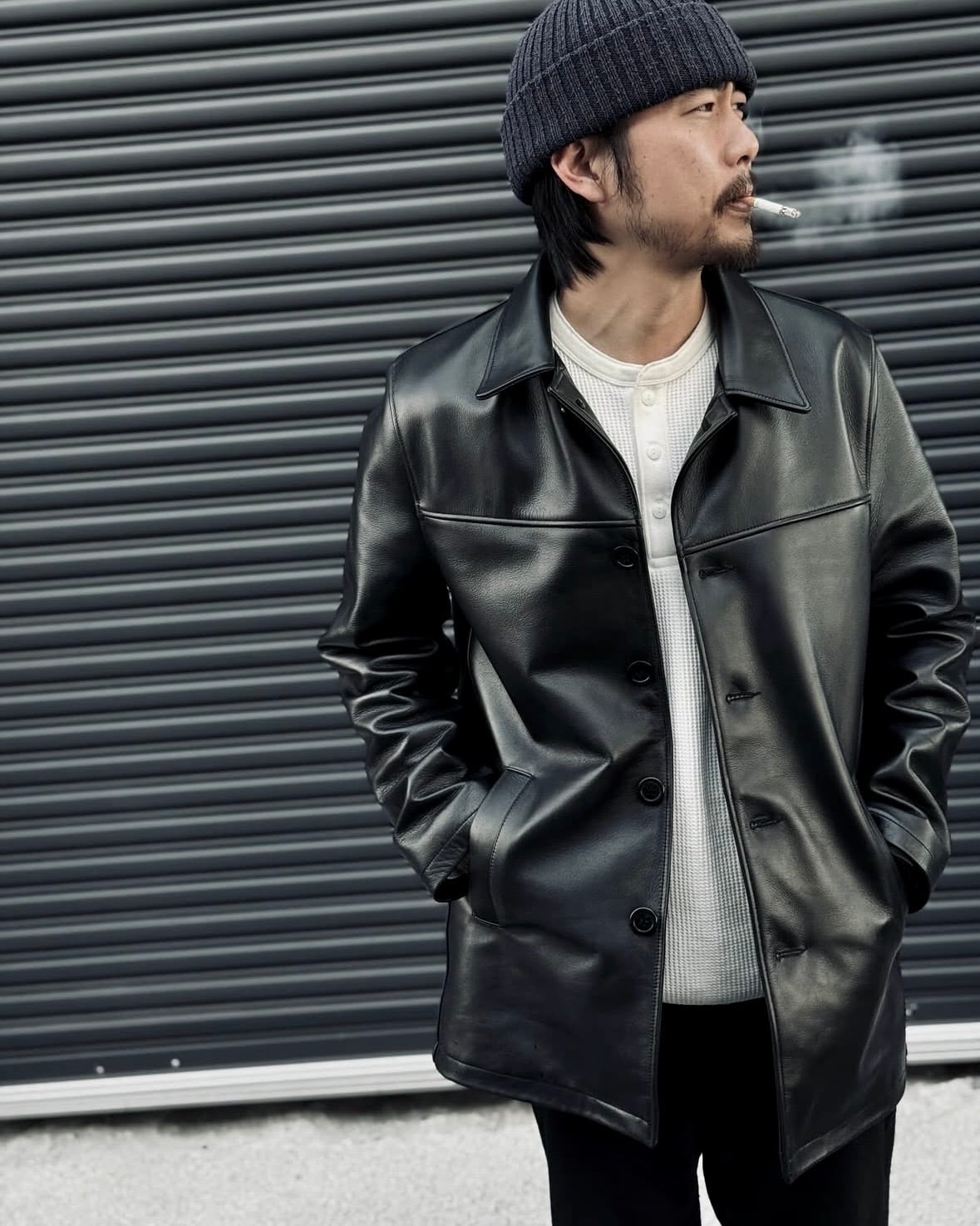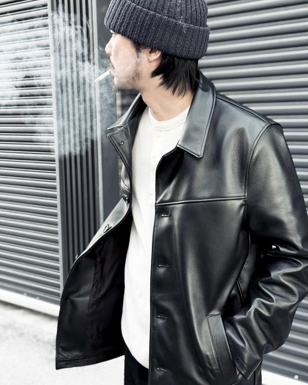 普段使いを前提に作られたジャケットはインナーが薄手でも、厚手でもシルエットを崩さず着れる様、隅々まで拘り詰まったレザージャケットです。